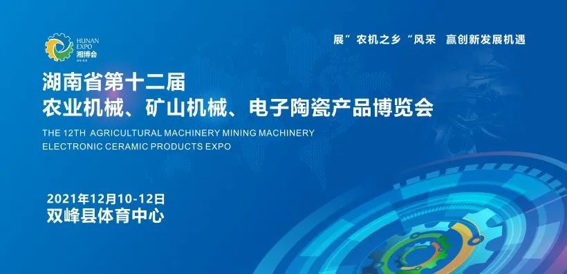 熱烈慶祝湖南省第十二屆農(nóng)業(yè)機械、礦山機械、電子陶瓷產(chǎn)品博覽會即將開幕!