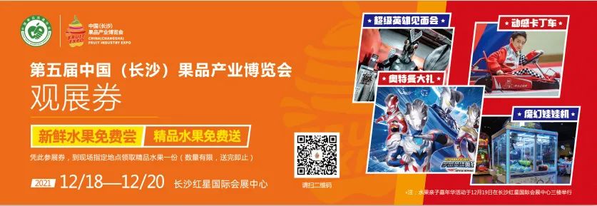 12月18日—20日長(zhǎng)沙紅星國(guó)際會(huì)展中心、12月18日—20日由中國(guó)果品流通協(xié)會(huì)、湖南省供銷合作總社、湖南省農(nóng)業(yè)科學(xué)院、長(zhǎng)沙市人民政府、共同主辦的第五屆中國(guó)(長(zhǎng)沙)果品產(chǎn)業(yè)博覽會(huì)(以下簡(jiǎn)稱“果品展”)將于明日在長(zhǎng)沙紅星國(guó)際會(huì)展中心開幕。