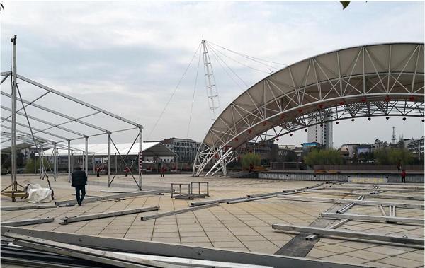 陽光正好的這幾天大棚已經(jīng)進入搭建階段,一起看一看工人師傅們在華容河廣場的春光里緊張忙碌的身影。