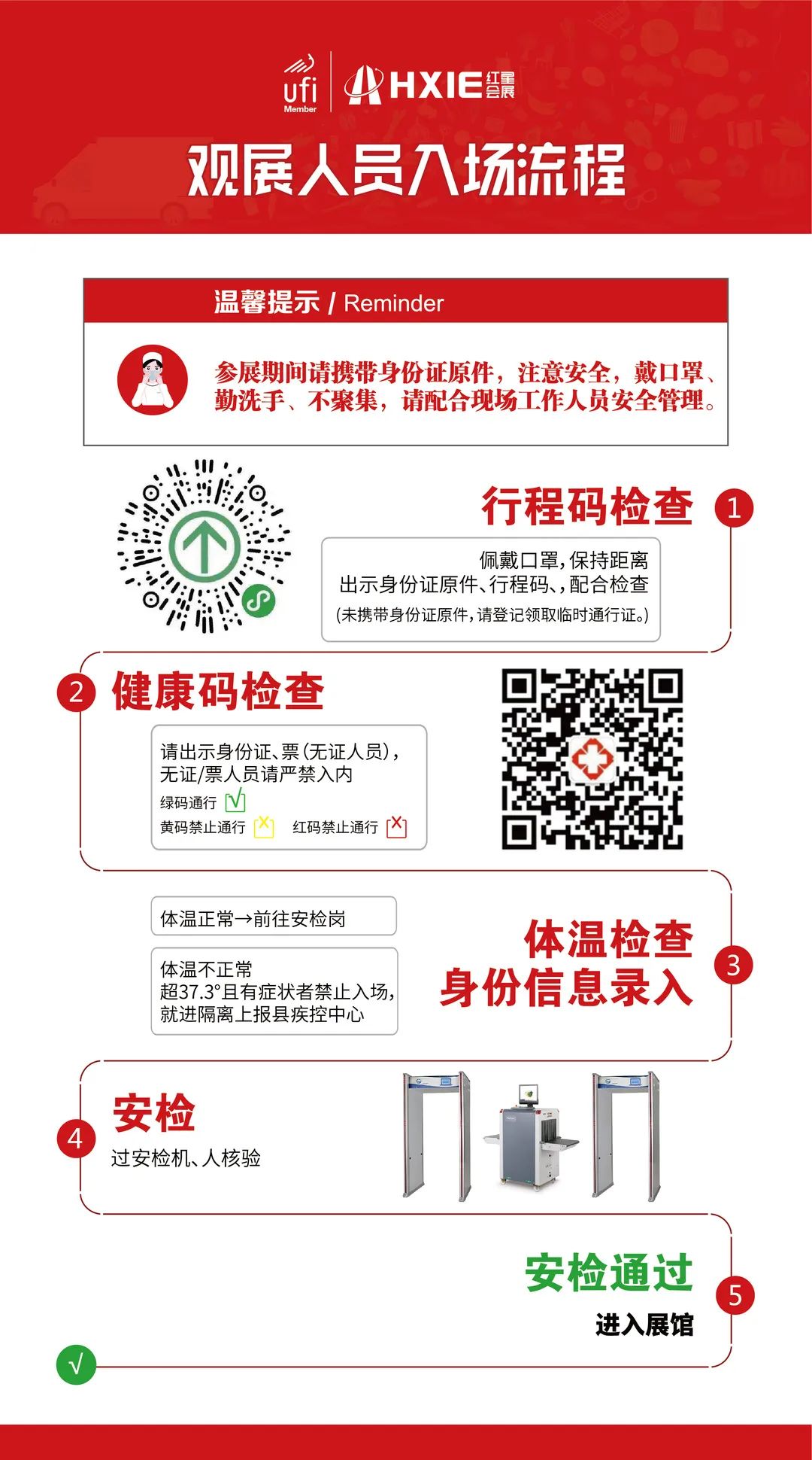 所有參展觀眾進入展會現(xiàn)場前,需持身份證原件,戴好口罩,現(xiàn)場掃“行程碼”“湖南省電子健康(綠碼)”入場。