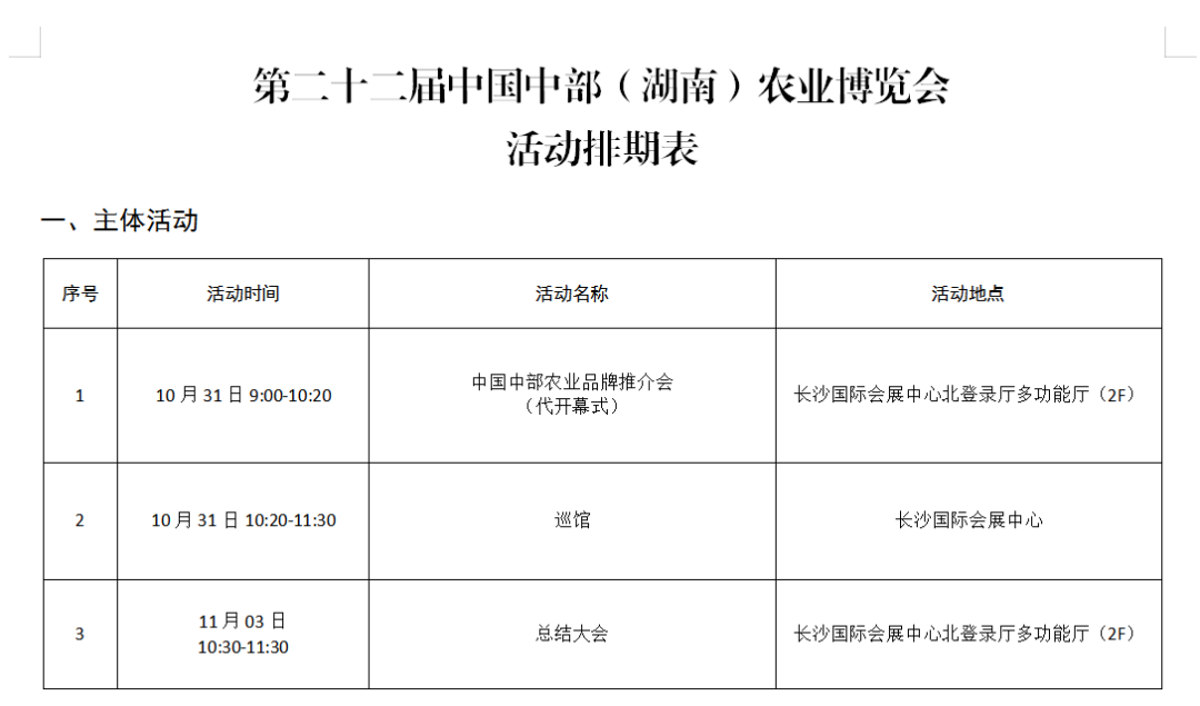 10月30日上午第二十二屆中國中部(湖南)農(nóng)業(yè)博覽會(以下簡稱“中部農(nóng)博會”)就要在長沙國際會展中心開幕啦。
