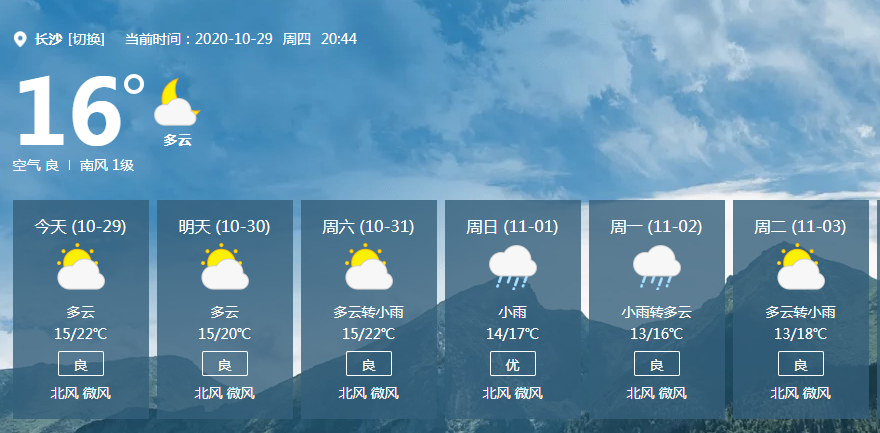 長沙未來五天的天氣以多云為主,時有小雨,請注意增添衣物!