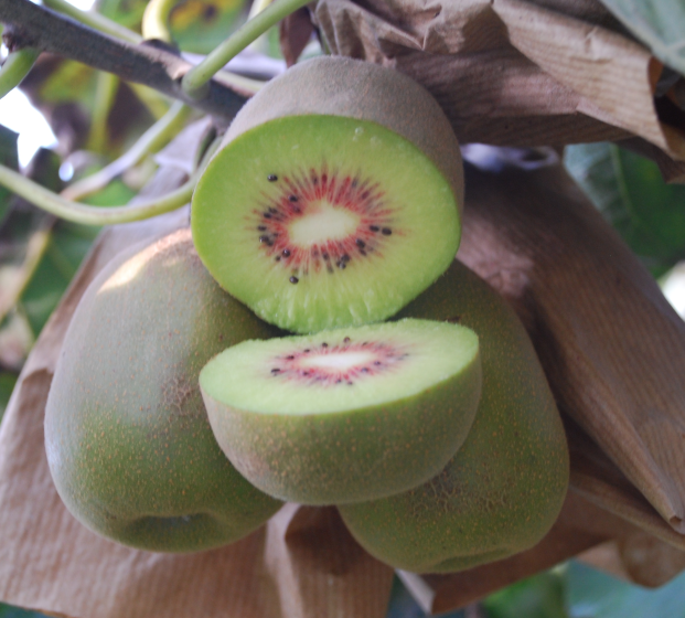 我果個中大,整齊美觀,果心橫截面呈放射狀紅色條紋,形似太陽,因此被人稱為“紅陽”。