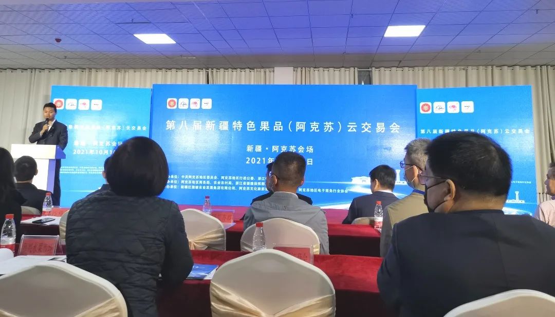 10月16日,果品展項(xiàng)目組與紅星農(nóng)副產(chǎn)品大市場(chǎng)負(fù)責(zé)人應(yīng)邀參加2021新疆農(nóng)優(yōu)特產(chǎn)品產(chǎn)銷(xiāo)對(duì)接活動(dòng)(以下簡(jiǎn)稱(chēng)對(duì)接活動(dòng))開(kāi)幕式及專(zhuān)場(chǎng)推介簽約會(huì)。