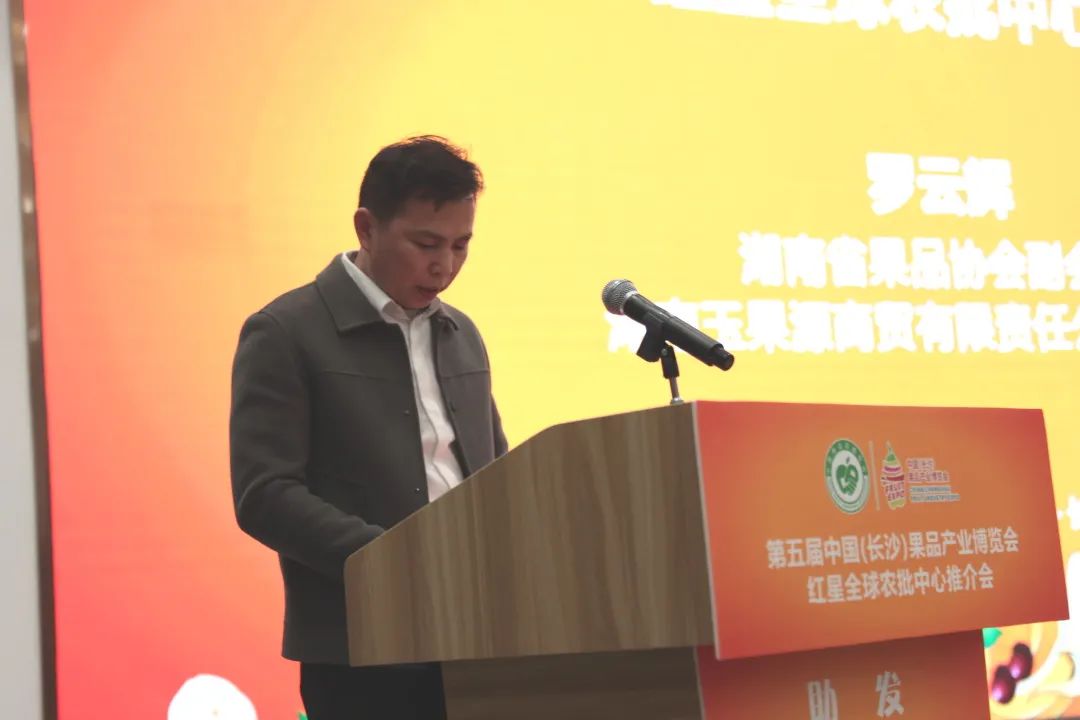 11月5日,第五屆中國(長沙)果品產(chǎn)業(yè)博覽會(以下簡稱果品展)在長沙紅星全球農(nóng)批中心舉行推介會。湖南省果品流通協(xié)會(以下簡稱省果協(xié))會長,紅星實業(yè)集團黨委書記、董事長羅躍出席并講話,省果協(xié)秘書長粟躍云擔(dān)任主持,省果協(xié)會員單位代表、紅星全球農(nóng)批中心經(jīng)營戶代表近200人參加推介會。