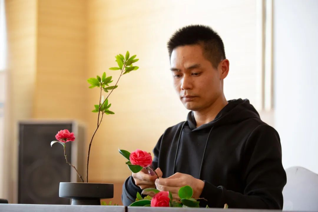 本次體驗課在一場中國傳統(tǒng)插花表演中拉開帷幕,只見花藝師手持一個樸素的花盆,幾種簡單的花材,幾經(jīng)修剪,就變成了一盆盡顯東方寫意之美的插花作品。