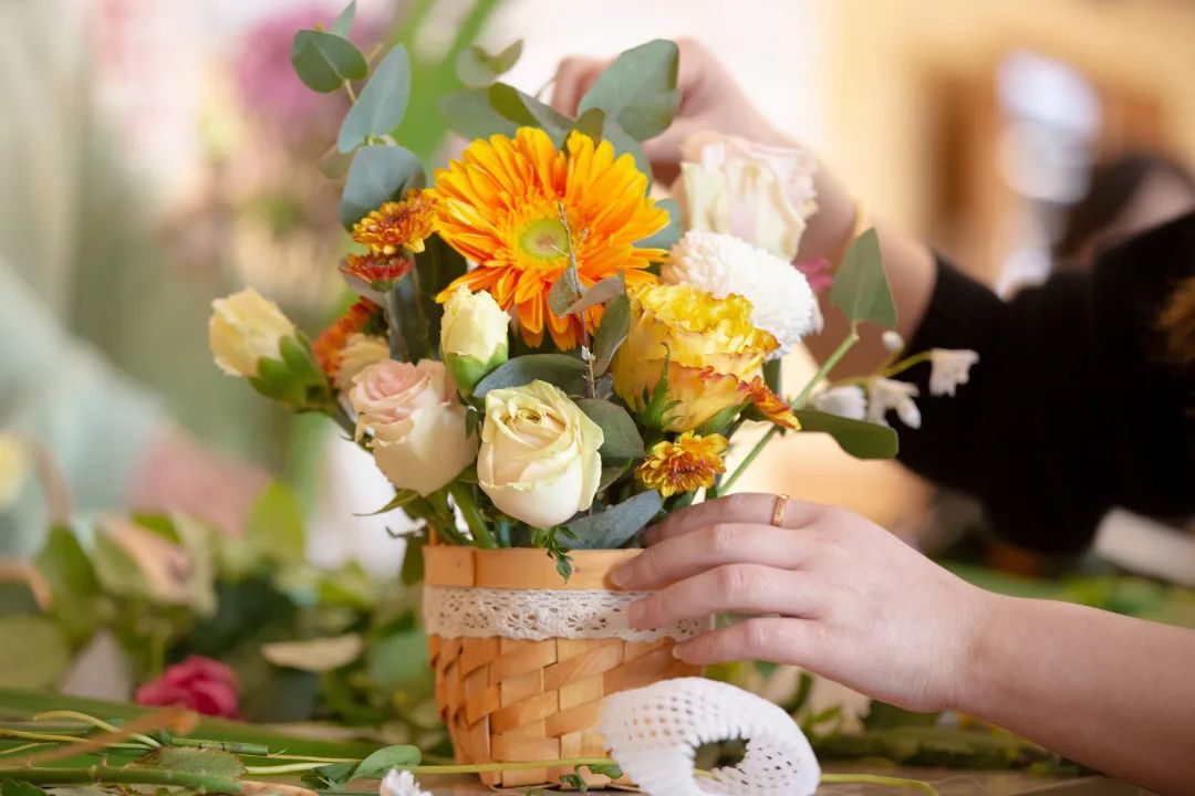 “插花是一門具有濃郁生活氣息的高雅藝術活動,不僅能豐富我們的日常生活,美化環(huán)境,還能夠提高藝術修養(yǎng)?!被顒蝇F(xiàn)場,花藝師從花語寓意、顏色搭配、插花技巧等方面,向大家傳授了花藝知識,同時對各類鮮花該如何養(yǎng)護,做了簡單的分享。