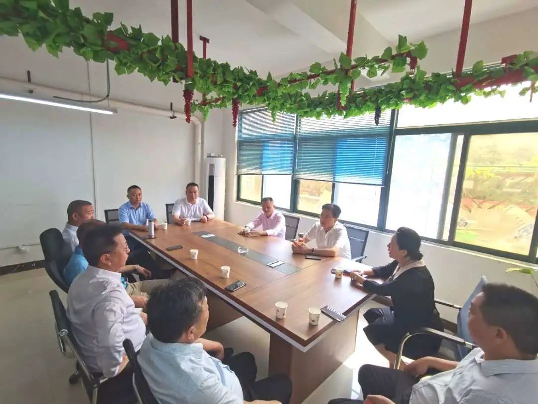 揭牌儀式后,羅躍與粟躍云、鄭曉玲、榮顧紅星總經(jīng)理張俊及湖南省果品協(xié)會(huì)相關(guān)會(huì)員單位負(fù)責(zé)人在紅星福達(dá)會(huì)議室進(jìn)行座談。羅躍強(qiáng)調(diào),未來三年,要加速水果城二期2萬平方米的會(huì)展展館建設(shè),通過會(huì)展賦能憑祥口岸經(jīng)濟(jì),助力憑祥打造新時(shí)代沿邊開發(fā)新高地。