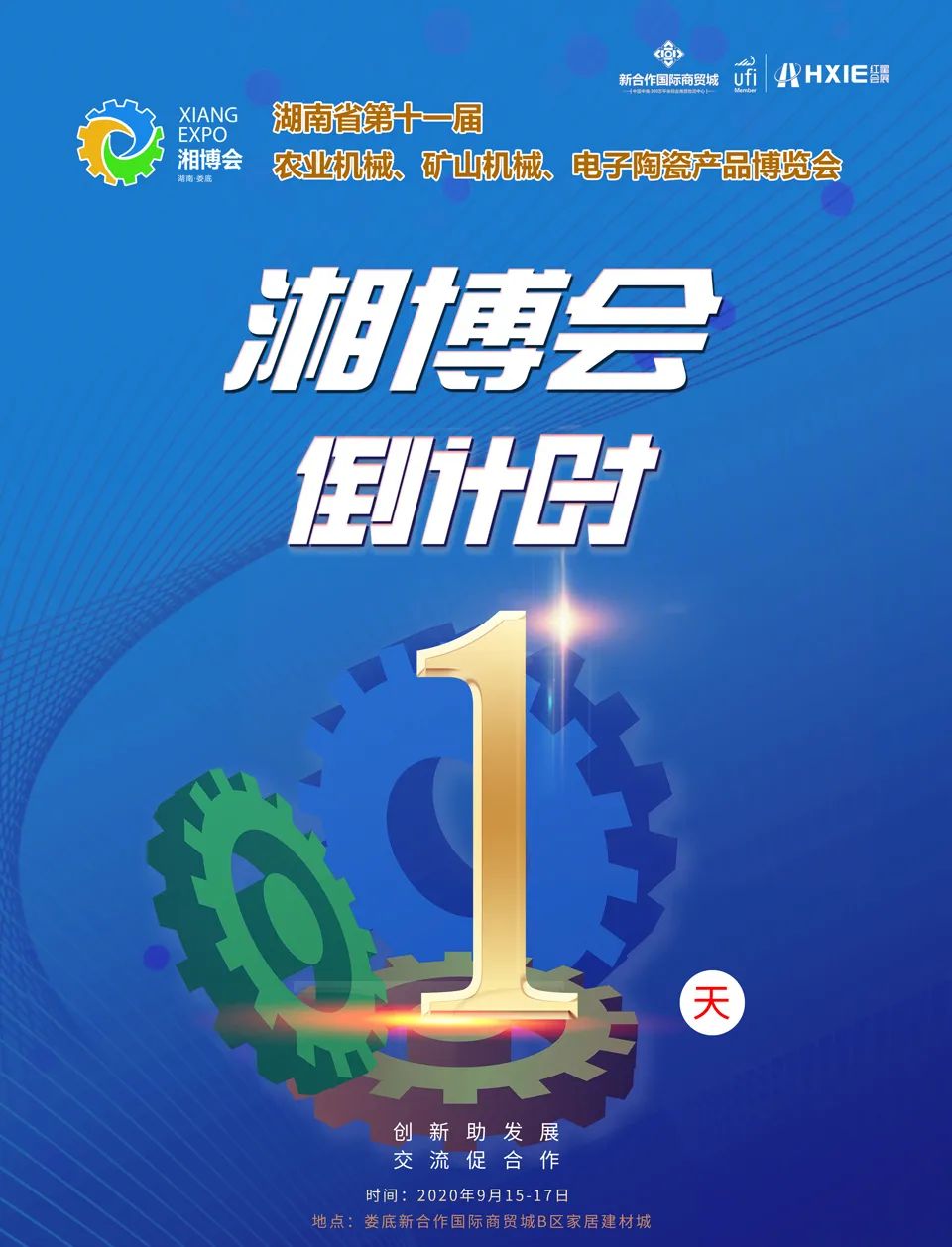 9月14日,距離湖南省第十一屆農(nóng)業(yè)機(jī)械、礦山機(jī)械、電子陶瓷產(chǎn)品博覽會(huì)(以下簡(jiǎn)稱(chēng)“湘博會(huì)”)還有1天!